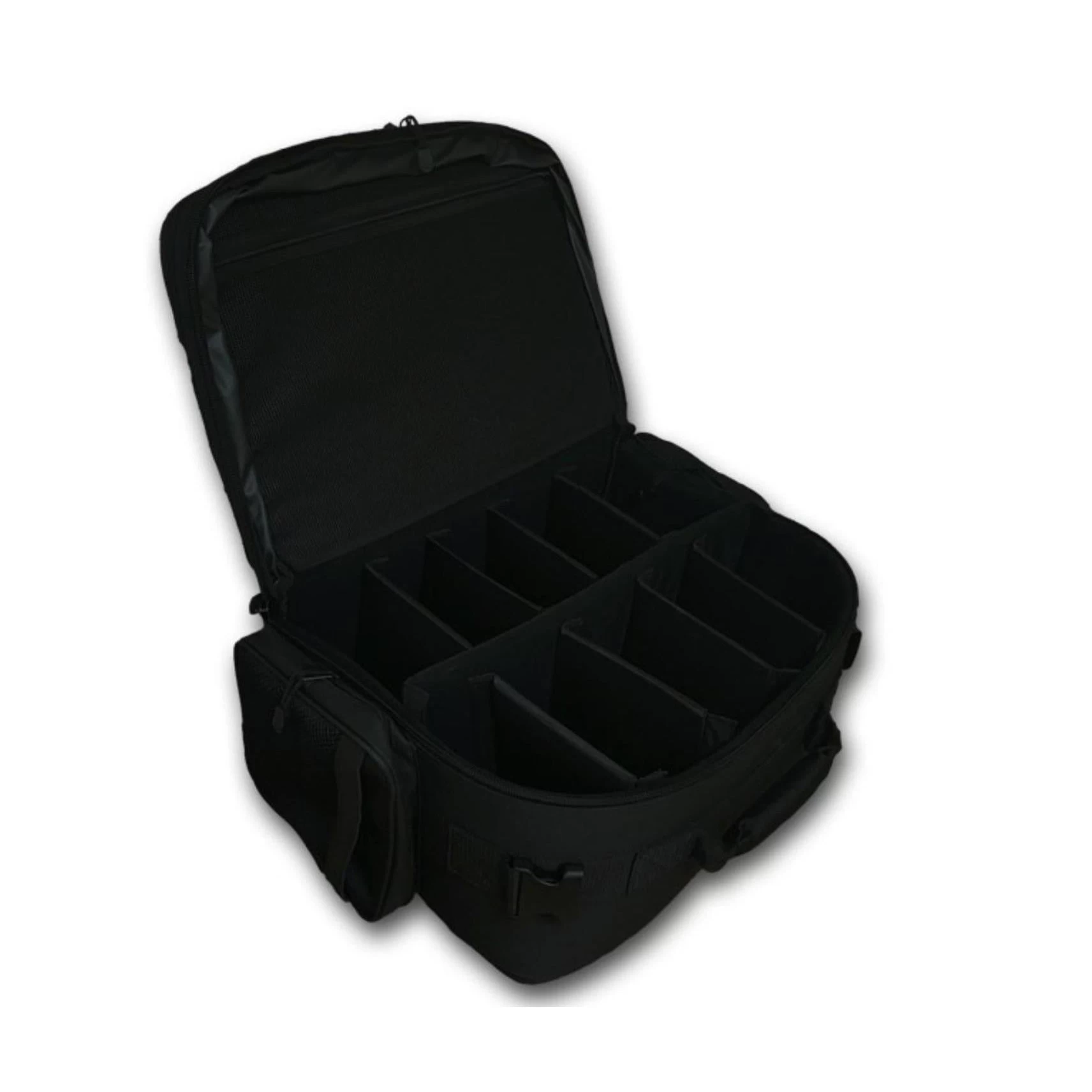 | Large Avet Reel Case Measures 22″ x 14″ x 12″ 5 roomy pockets Zippered expansion seam for main cargo area Padded movable dividers to create 10 reel compartments | Small Avet Reel Case Measures 14″ x 9″ x 8″ 4 roomy pockets Padded movable dividers to create 6 reel compartments |