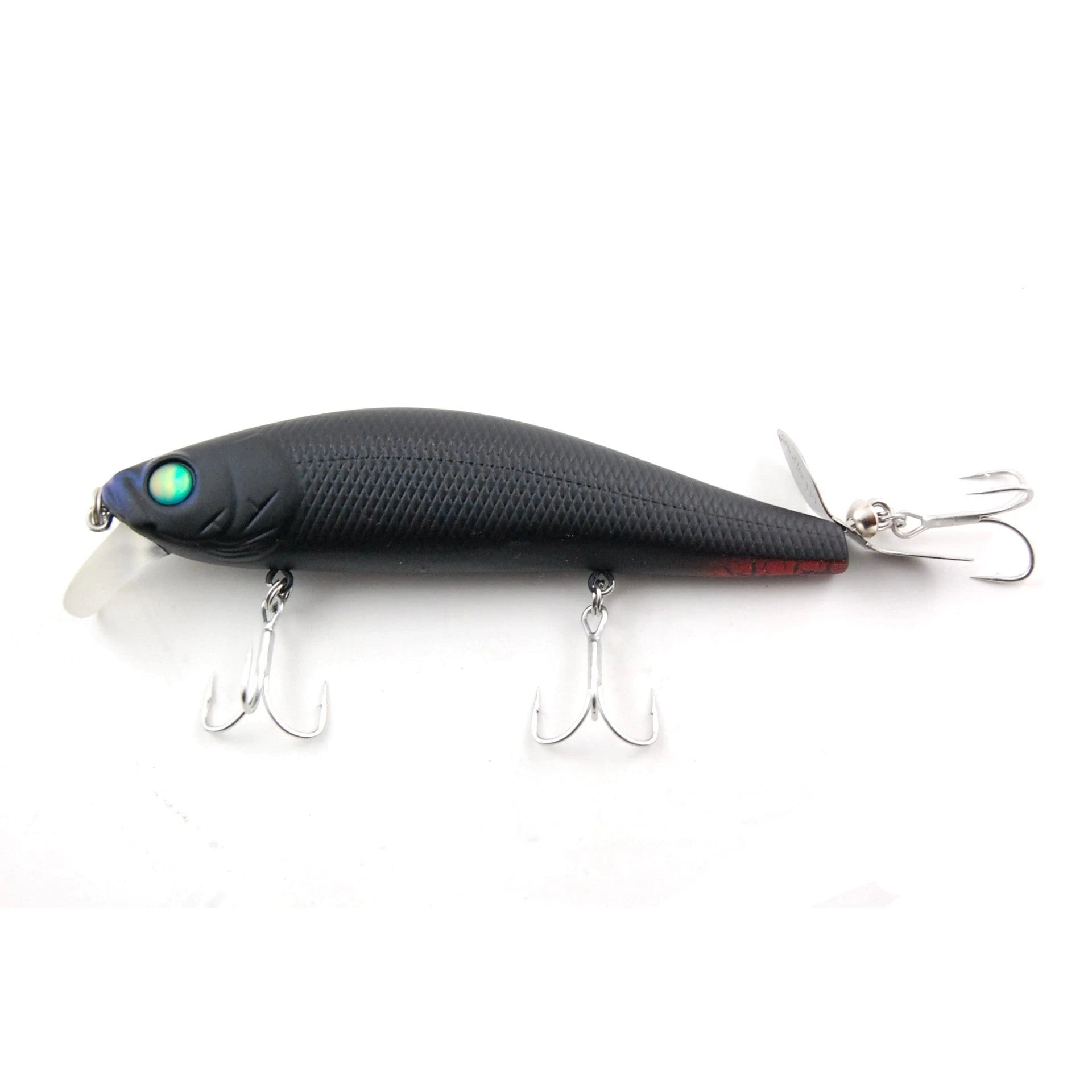 The DEPS Spiral Minnow redefines the concept of a wake bait. Very effective on the surface or just beneath it, it has an uncanny ability to get fickle bass to attack. Its flatter sides produce a sharper and quicker wobble-and-roll when retrieved, and the prop continuously causes a ruckus with an enticing clanking sound and bubble trail.