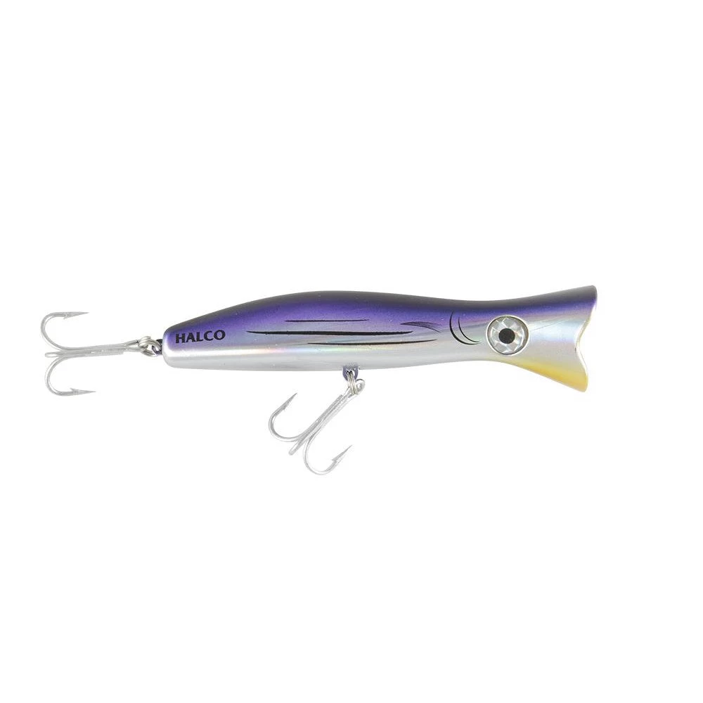 The Halco Roosta Popper 160 is perfect for targeting game fish that are aggressively attacking bait fish near or on the surface. The hardware on these poppers is of the highest quality and will stand up to big fish like tuna, GT’s, dorado, and peacock bass. They are best used with a heavy spinning rod and reel due to the higher inches of line retrieved per crank. We prefer to have braided line with a short 3′ top shot of monofilament or fluorocarbon.