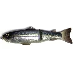 The torqueful agitation of the large HUGE Buzzbait Type II prop, which has been set to a flap angle that maintains a stable swim posture even during a fast retrieve, causes a wide range of squeak sounds from violent splashes and waves and rubbing against wires and rivets. A closed eye is used to prevent damage such as deformation or breakage of the arm due to the line binding part shifting to the upper arm or lower arm. The Huge Buzzbait is equipped with a heavy wire long shank hook # 9/0 that can withstand a deadly battle with monster fish.