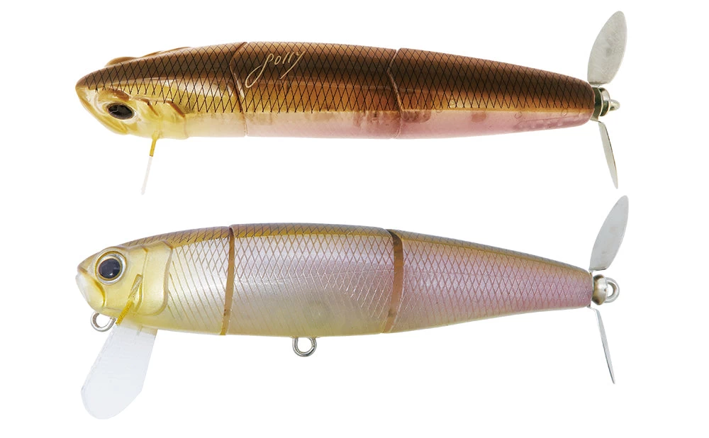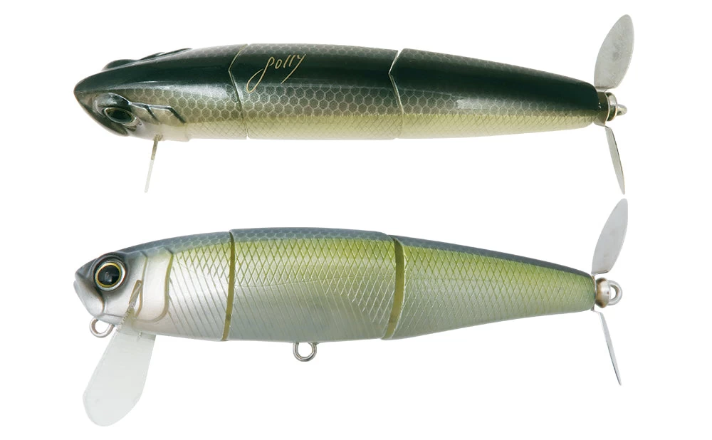 A sinking swisher that can pull the middle layer in a dead throw and stimulate the bass with multiple elements such as flashing, rubbing noise, and water flow produced by the prop that rotates at high speed. While wearing these effective performance under high pressure, Jolly added a lively body action. The soft roll action changes the shape and color of the body intricately, improving both fish-attracting power and bite-inducing power. Based on a slow retrieve at a constant speed, it becomes a wake bait that makes undertow and swish sounds when the rod is set up and reeled in at the same time as it hits the water. In the super dead slow retrieve, the prop rotates at high speed while the body shakes slightly. Furthermore, by winding while shaking, it creates a roll action with a smaller moving distance and induces a bite. In addition, the wide lip, which is set slightly vertically, is good at avoiding the cover, and greatly contributes to improving the “ease of getting caught”, which was the weak point of the sinking swisher. It is a next-generation sinking swisher that surpasses the same category.