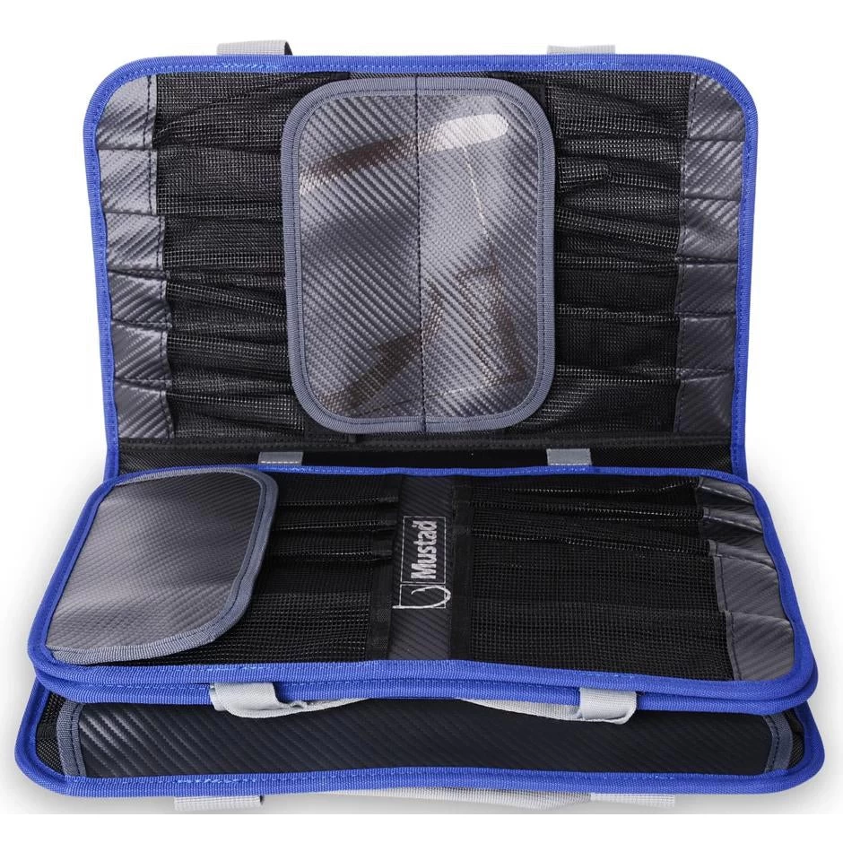 Keeping organized in the boat and at home is all part of the fun. The waterproof Mustad Jig Pouch features many pockets for lures and jigs and an outer pocket, constructed from tough mesh for assist hook and leader material. There are 5 extra-large jig slots that will take jigs up to 11”/30cm, 18 jig slots that will take up to 7,5”/20cm and 12 slots for smaller jigs up to 6”/15cm. In total this practical wallet will accommodate 35 jigs plus room for assist hooks, leader material and much, much more. Features 500Denier waterproof Tarpaulin, one-handed carry handle, practical outer mesh pocket and click lock strap closure. Dimensions: 14,5”/37cm x 9”/23cm x 3”/7,6cm.