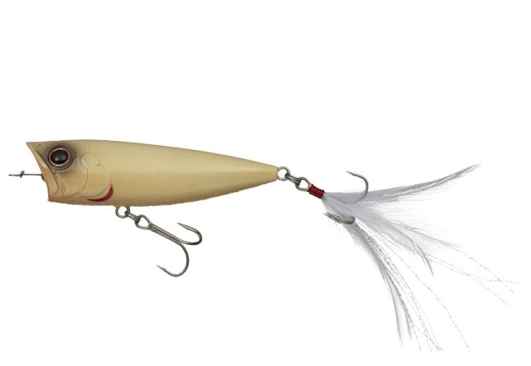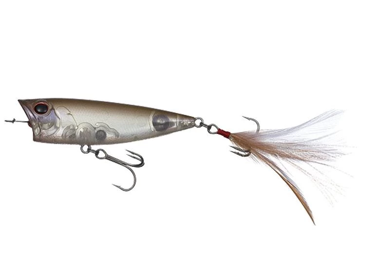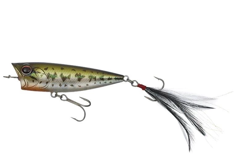 The Evergreen OB-68 is lure does the job of “conquering the surface pattern.” The body, which is designed with its tail flipped up, reduces air resistance, cuts through head winds, and casts long distances to search a wider area. It has increased control due to better weight distribution and body balance. With a body balance that responds sensitively to rod work, it can handle with ease a variety of challenges, from slow action by standing trees or rocks, replicating high-speed action of a bait chased by backwaters, and turning action within a narrow traveling range to high-speed twitches. Rattles in four different materials — tungsten, brass, steel and glass — produce sounds in different frequencies. The hybrid rattle sound has wide appeal to fish under various conditions.