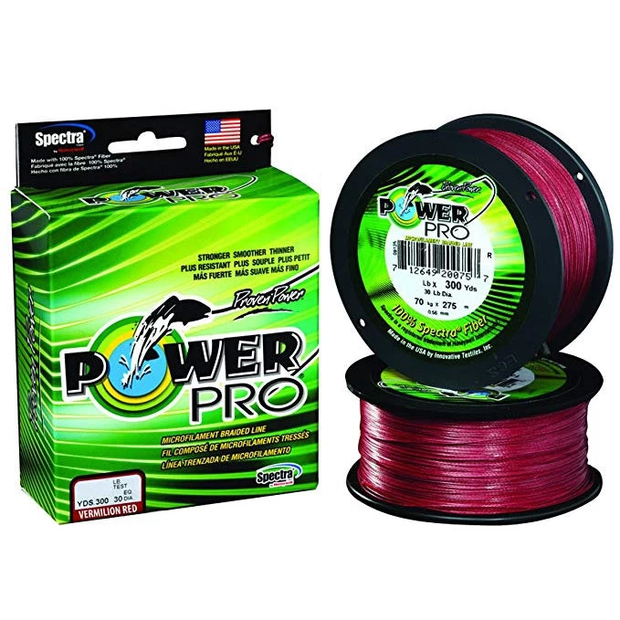 Power Pro Spectra Braided Line Vermillion Red is a standard on the West Coast of California for both salt and freshwater.  This braid is strong!!  It’s also a round braid so it won’t cut into itself as easily as some of the competitors.  This ultra thin and limited stretch makes it perfect for solid hook sets and is the ultimate in sensitivity. Â