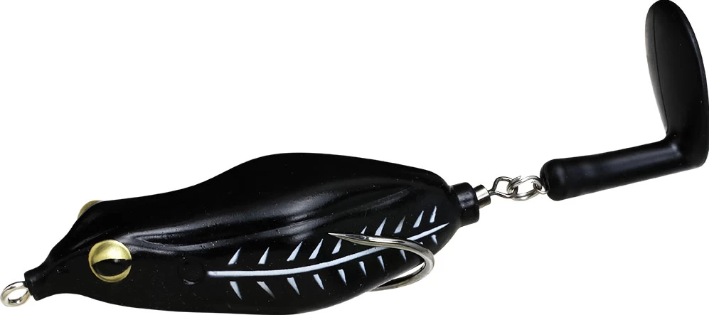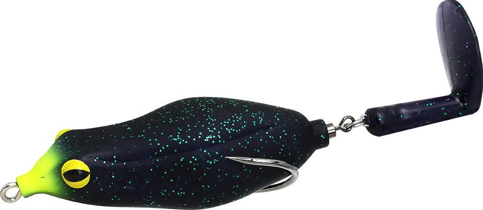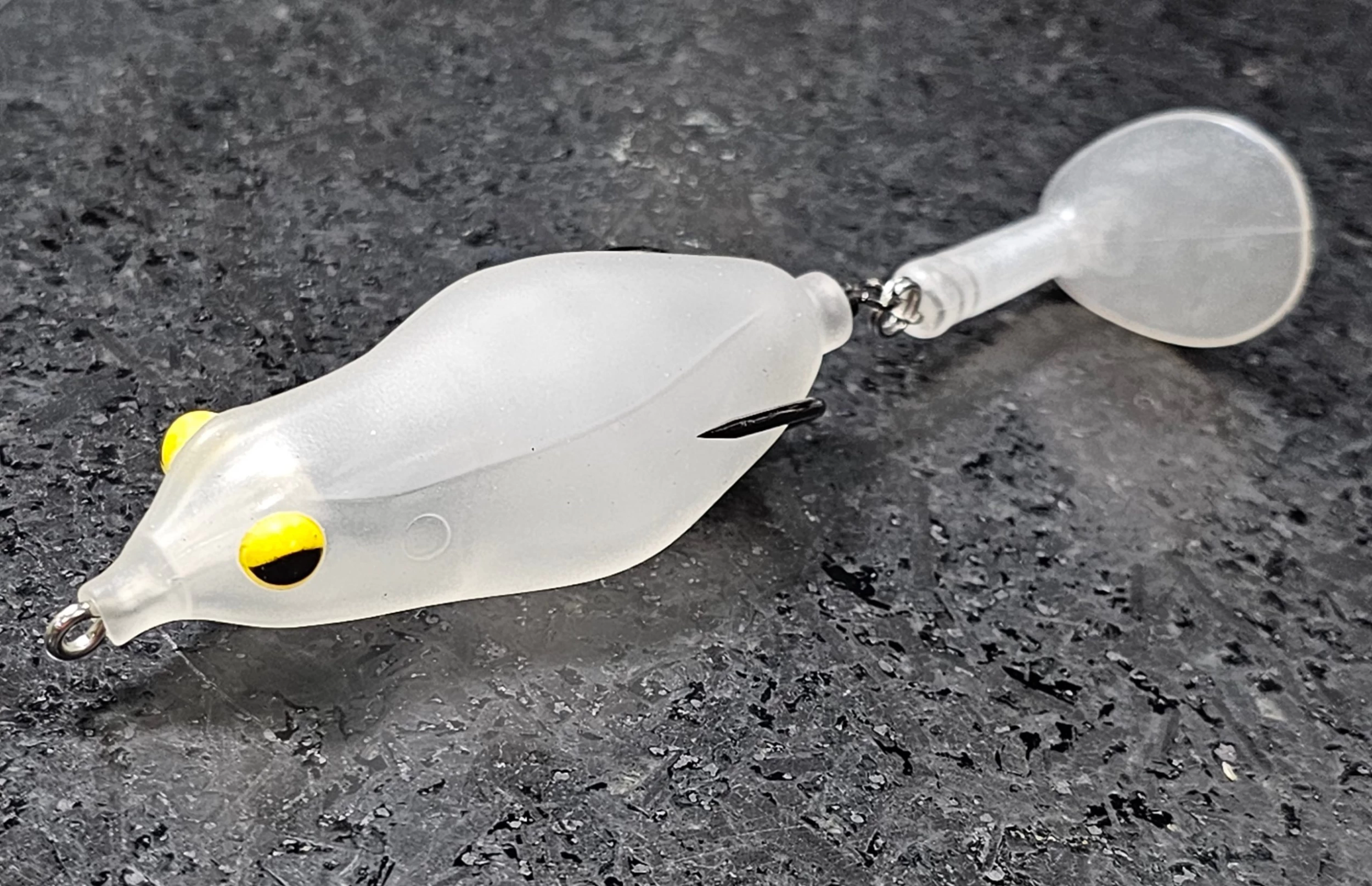 The Teckel USA Sprinker Frog has the same patented, lean amphibian design as their other well loved frogs, but with a twist. The Sprinker Frog features a whopper-plopper style soft plastic tail that rotates and kicks upon retrieval to create just the right amount of noise. Walk it cover cover like and other frog, then burn it to bring the big bass out of hiding with an attractive kick!