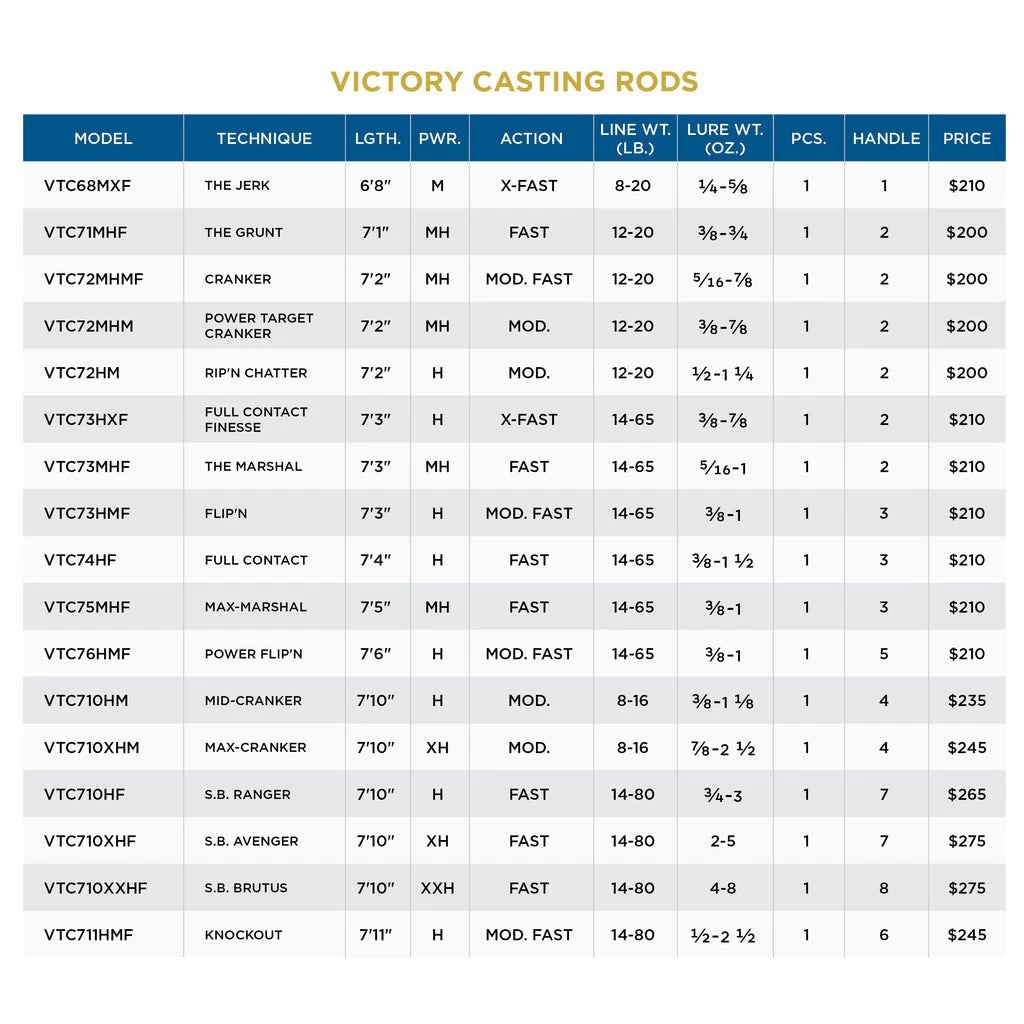Designed and handcrafted in Park Falls Victory utilizing the combination of St. Croix’s proprietary SCVI and SCIII carbon fibers in a hybrid pattern blended to create SCIII+. Designed with the inputs of Bassheads nationwide, Victory Casting Rods features 17 balanced models focused on techniques, comfort, and the ultimate in fish ability and affordability backed by a 15 year transferable warranty, built in the USA.     Â
