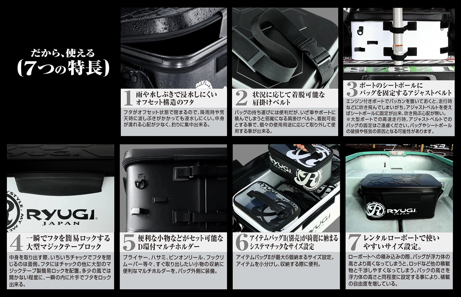 A large functional tackle bag that has been thoroughly considered for use in boats and bags. A tackle storage bag that is indispensable for anglers. The bag must be easy to use and provide good tackle protection. Assuming every case from the angler’s point of view, we considered the usability. As a storage case for loading luggage into the car when bobbing. As a tackle box for loading and unloading luggage compactly when low boating.