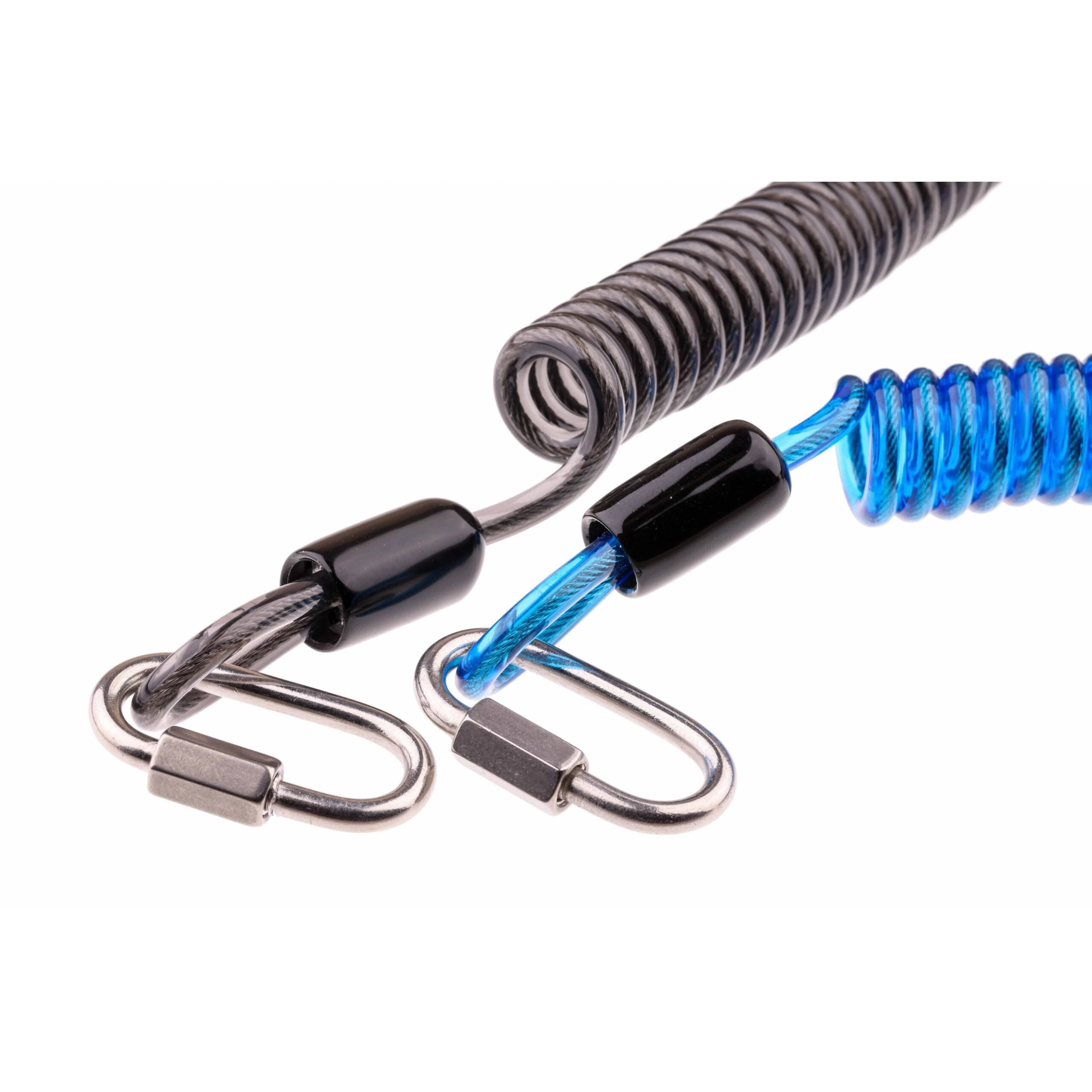 - Clear Blue Tether TPU coated wire, 10″ retracted length, 36 inch extended length