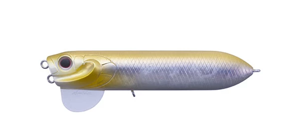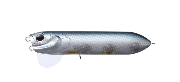OSP has reverse-engineered the pencil popper to establish a new genre of surface multi-action baits: the Yamato. Normal pencil poppers have one cup on the front of the bait to establish its action- the Yamato took it the next step and equipped cups on both sides of the lure’s head and the bottom was designed to push out like a lip. One: a walk the dog action churns more water and increases splash while the centerboard below the head controls the current like a rudder and allows the bait to perform wide turns with stability. Two: line ties allow for two different actions: tying to the higher eye creates a peculiar pop sound and dome splash while tying to the bottom eye causes the bait to dive subsurface for a wake bait appeal on a straight retrieve or walk-the-dog action.